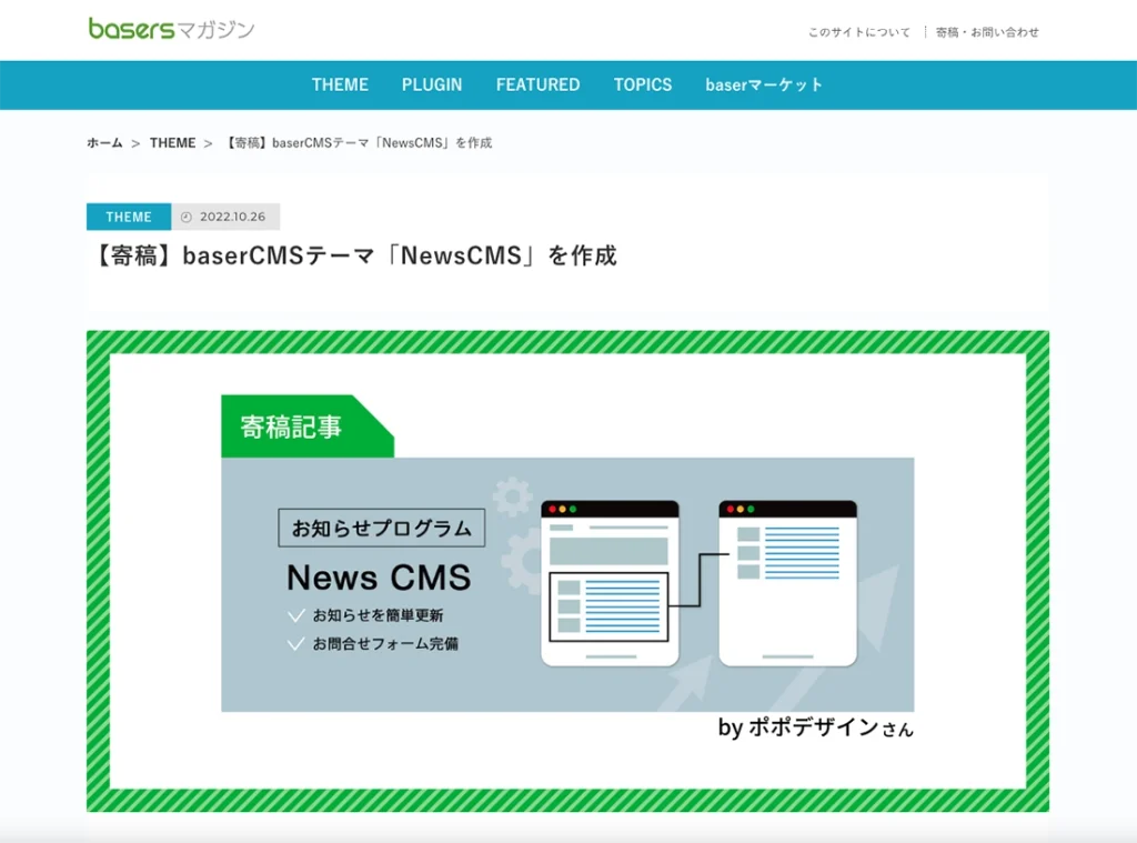 baserCMS4系テーマ「NewsCMS」をbasersマガジンにご掲載いただきました。