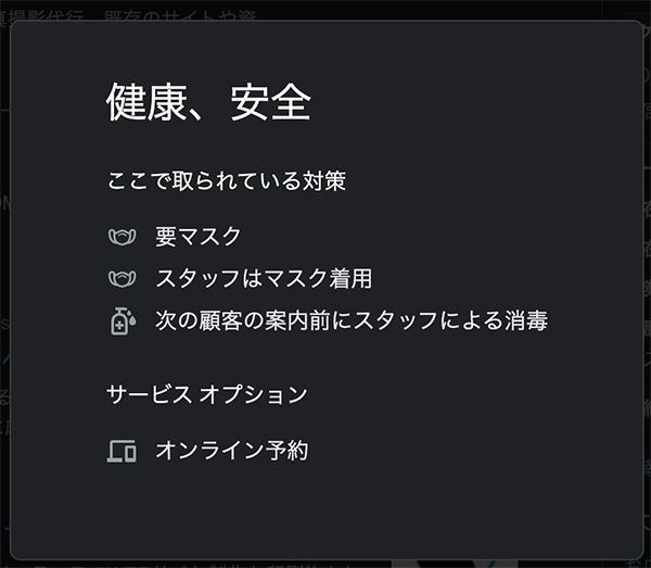 サービスオプションなどコロナ対策の表示も選択できます。