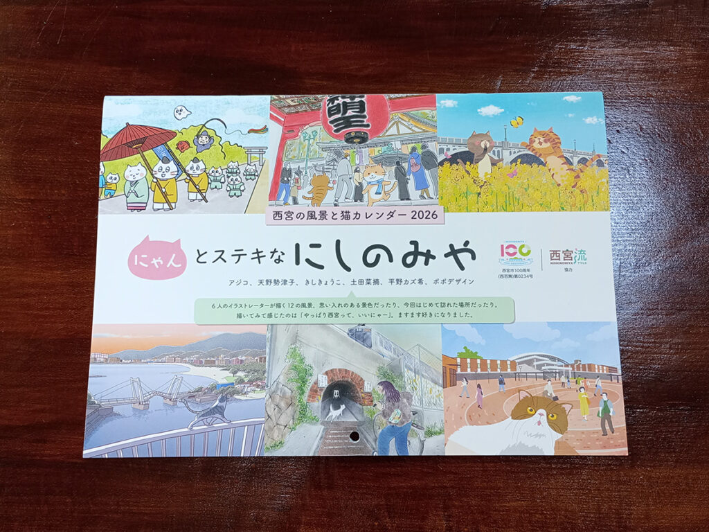 西宮の風景と猫を、地元イラストレーター6人が描く、西宮の風景と猫カレンダー「にゃんとステキなにしのみや」カレンダーが今年も完成しました!