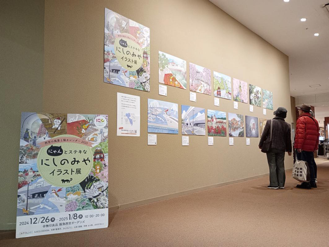 阪急西宮ガーデンズの無印良品で、「にゃんとステキなにしのみや」イラスト展を開催しました。