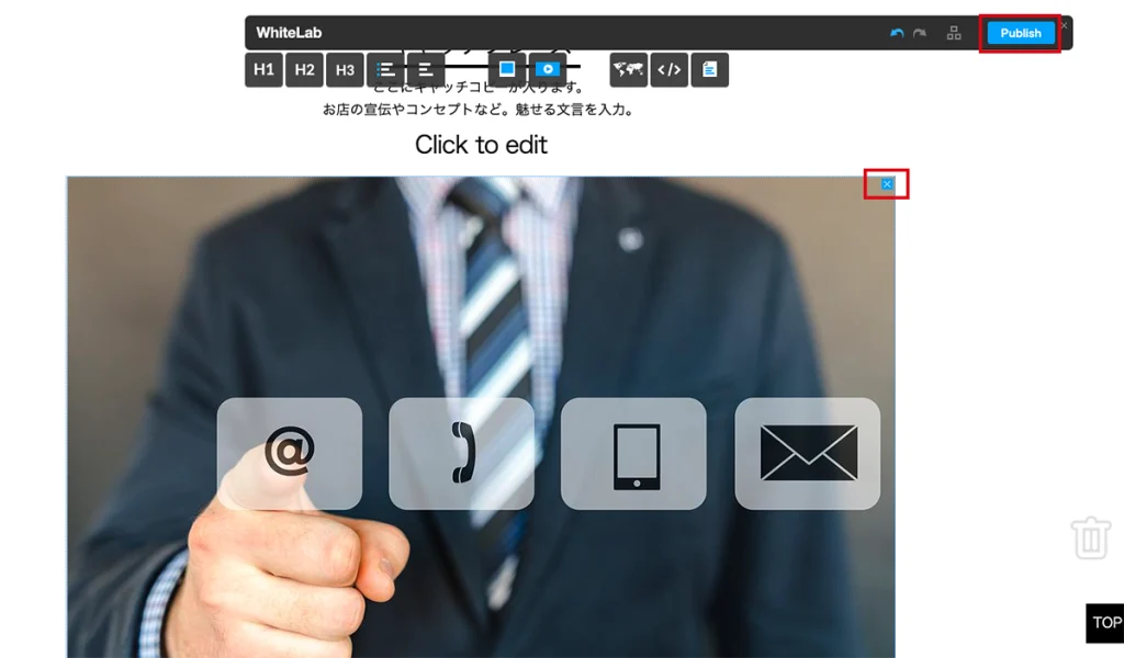 元に戻したい時は、右上の矢印で戻れます。編集が終わったら「Publish」を押して保存すれば完了です。