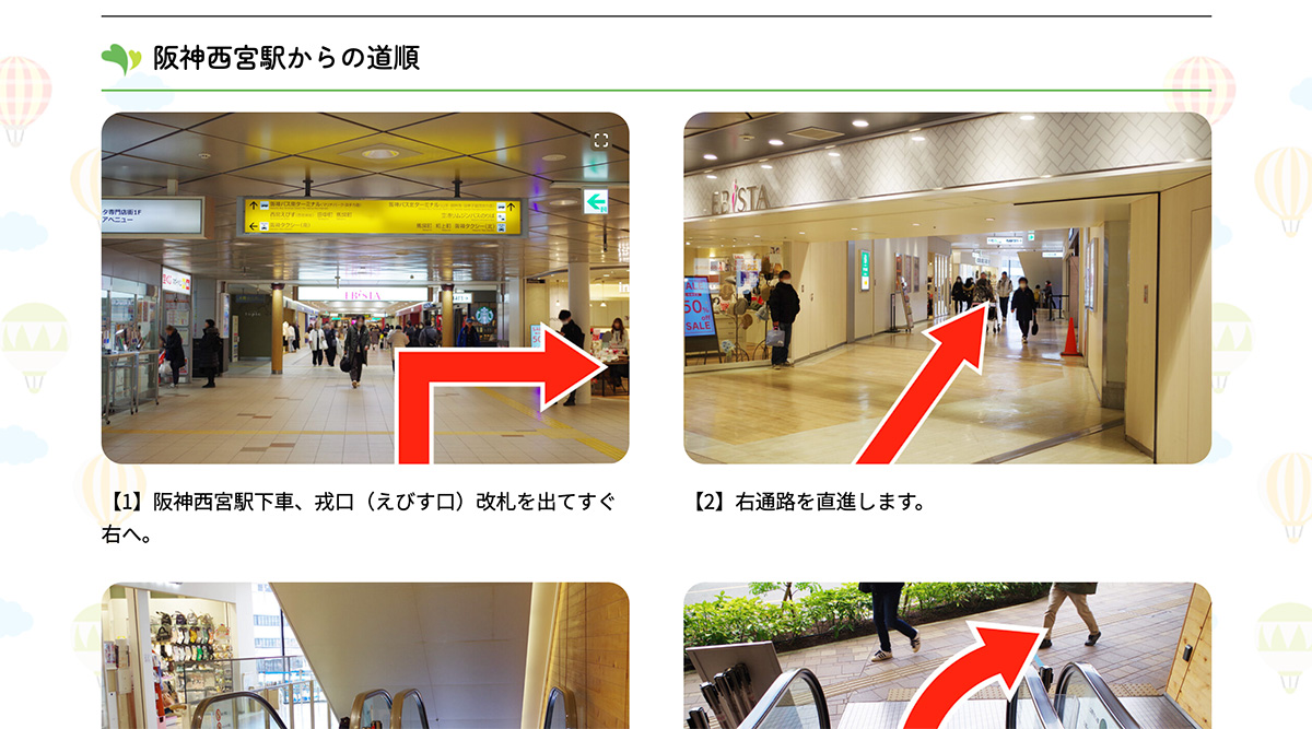 - 最寄駅の阪神西宮からの経路を写真撮影し、配置しました。