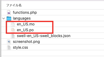 先ほどのサーバーの子テーマに.poと.moファイルをアップロードします。