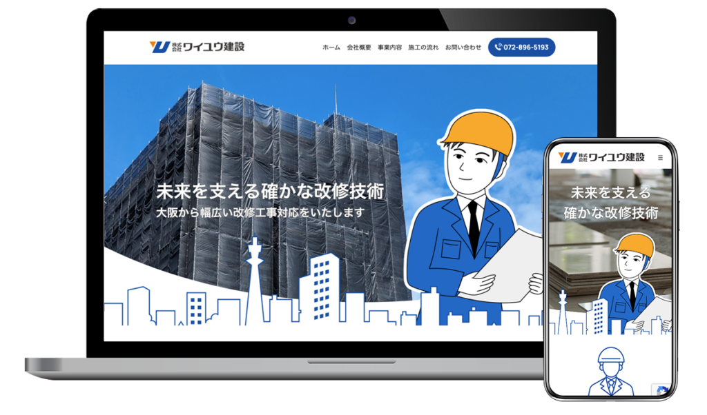大阪府枚方市の建設会社「株式会社ワイユウ建設」のホームページを新規制作いたしました。